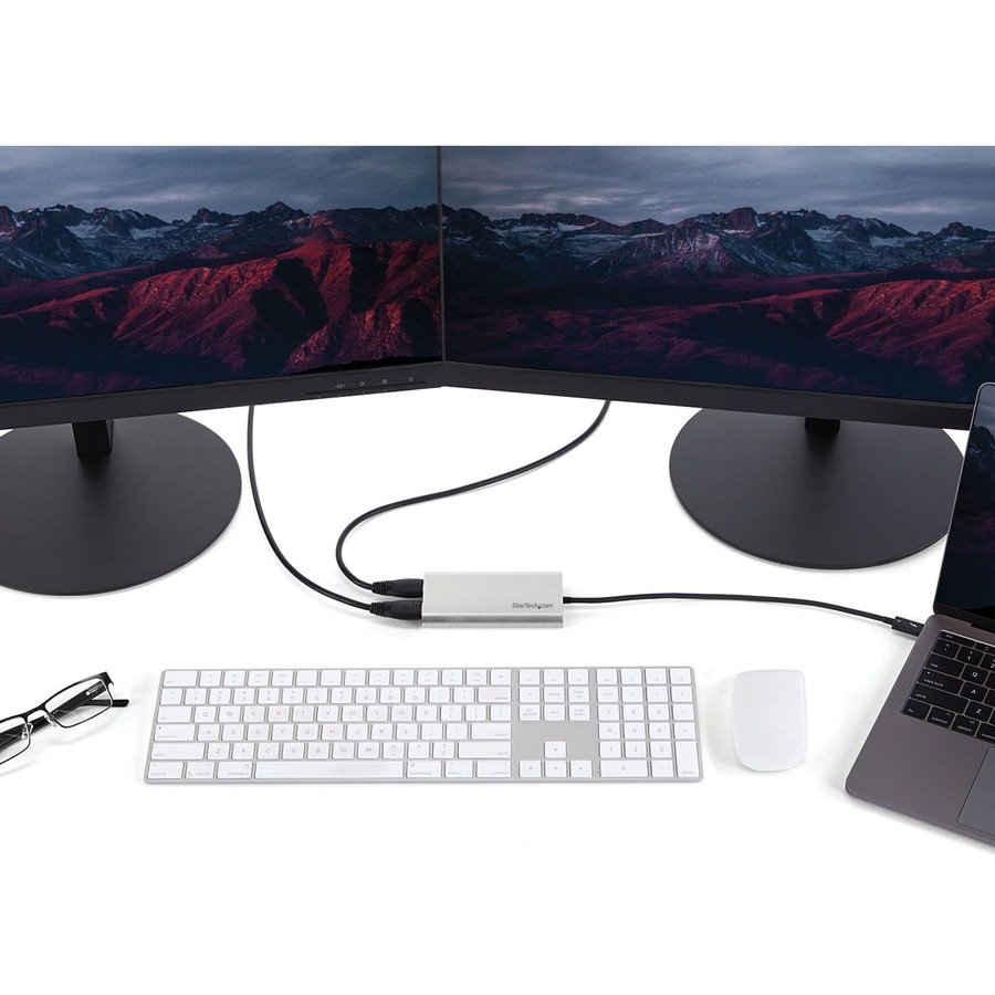 Functioning as an external 2-port graphics adapter with audio support, this is a compact and convenient alternative to a laptop dock when you don’t need full docking capability.