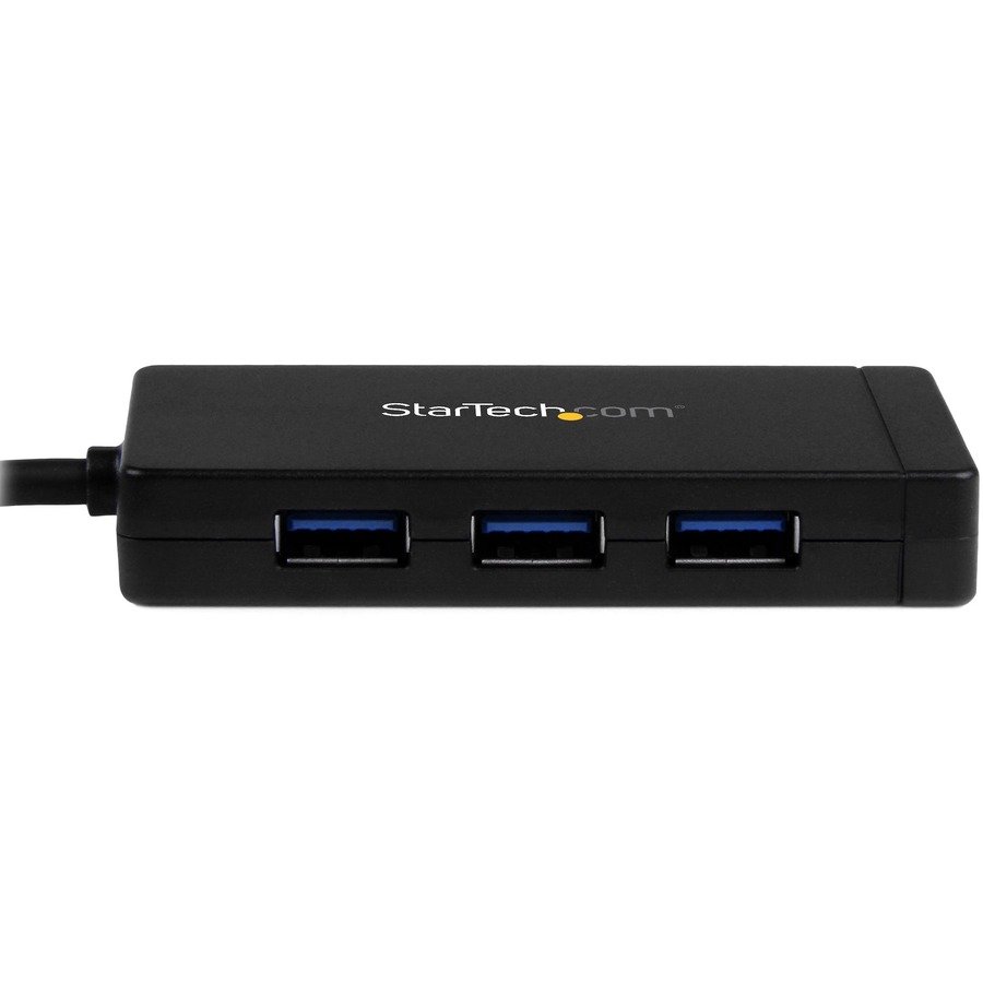 Through the USB-C host connector, this hub gives you three traditional USB-A ports, and a Gigabit Ethernet connection, making it a must-have laptop accessory. Plus, the integrated 30 cm (12 in.) cable lets you place the hub, your devices, and your network connection, exactly where you need them. It’s ideal for virtually any USB-C equipped laptop, such as Dell™ XPS, MacBook Pro, Chromebook Pixel™, or other MacOS or Windows based laptop or tablet. Take advantage of USB-C This dynamic USB 3.0 hub is TAA compliant and integrates an easy-to-use USB Type-C™ connector. It’s small and reversible, which makes for easier insertions, and you can connect the plug with either side facing up, which means less risk of damaging your ports and less frustration. While your USB-C equipped laptop, or MacBook is lightweight and portable, it might be missing vital connectivity ports, such as wired Internet. Because this hub offers a Gigabit Ethernet port, you can connect to a network in locations were Wi-Fi® is unreliable or unavailable. Compact design for portability or permanent placement With a small footprint and lightweight housing, you can easily tuck the hub and the included power adapter into your laptop bag to expand your connectivity when you’re traveling. Plus, the compact USB 3.0 hub takes up minimal space on a desk, so it fits perfectly in office, hot-desk (short-term guest), and BYOD workstation environments. Extended-length cable eliminates aggravation The hub’s built-in USB cable is long enough to reach your laptop or tablet’s USB 3.0 port, regardless of where the port is located. Now, you can eliminate the worry and frustration when your hub’s built-in cable is too short and doesn’t reach your laptop’s USB port location. Plus, the extended-length cable provides you with more desk placement options, which makes it easier to create a comfortable, space-efficient work area. Save money and time This easy-to-use hub is natively supported in most operating systems, and you can install it quickly, without having to install additional drivers or software. You can also avoid the nuisance and cost of purchasing new devices, by using the USB 3.0 hub with your current USB 2.0 and 1.x devices. The HB30C3A1GE is backed by a StarTech.com 2-year warranty and free lifetime technical support.