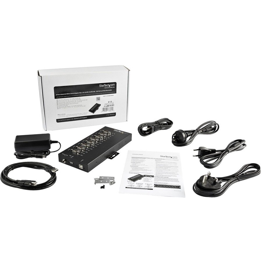 The versatile serial adapter converts a single USB port into eight RS232/RS422/RS485 serial ports, enabling you to connect, monitor, and control a wide range of serial devices, such as sensors, barcode scanners, and LED signage. It supports four operating modes, including RS232, RS422, 4-wire and 2-wire RS485.