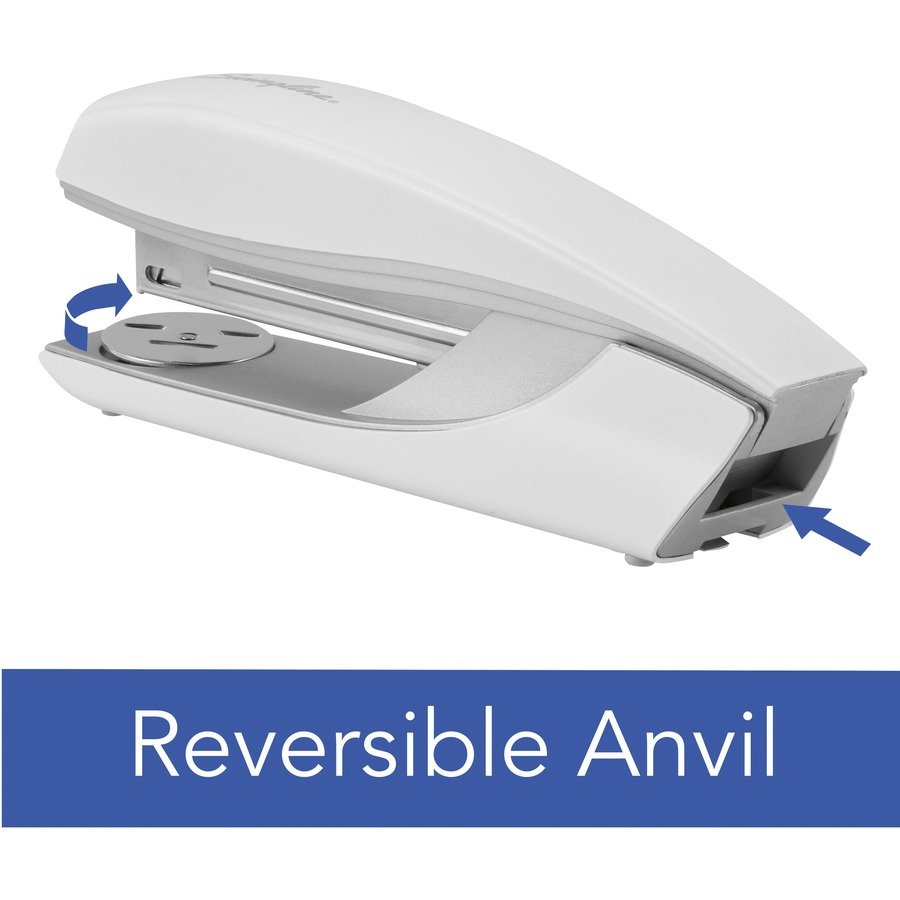 Take the hassle out of stapling with this high-performance stapler that easily staples up to 40 sheets at once. Direct Impact technology ensures you always get a jam-free staple for consistent performance. Its brushed top finish showcases your true style to let you stand out from the crowd. Integrated staple remover allows you to quickly remove unwanted staples without requiring any extra tools. Stapler also opens for tacking and includes an adjustable anvil for open or closed stapling.