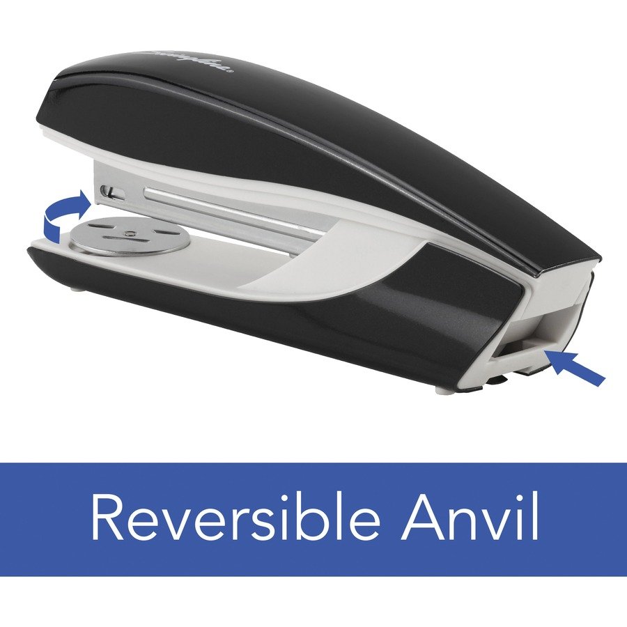 Take the hassle out of stapling with this high-performance stapler that easily staples up to 40 sheets at once. Direct Impact technology ensures you always get a jam-free staple for consistent performance. Its vibrant colors with a black and white metallic finish let you stand out from the crowd. Integrated staple remover allows you to quickly remove unwanted staples without requiring any extra tools. Stapler also opens for tacking and includes an adjustable anvil for open or closed stapling.