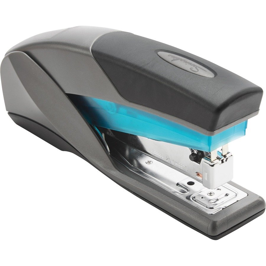 LightTouch Reduced Effort Stapler simplifies stapling two to 20 sheets. Stapler is engineered for smooth, easy operation, and excels at low sheet counts. For best performance, use Swingline S.F. 4 Premium Staples. Full-strip stapler design accommodates full strip of 210 staples. Soft grip surfaces enhance feel and control for desktop or handheld use. Made with a durable plastic housing and metal mechanism.