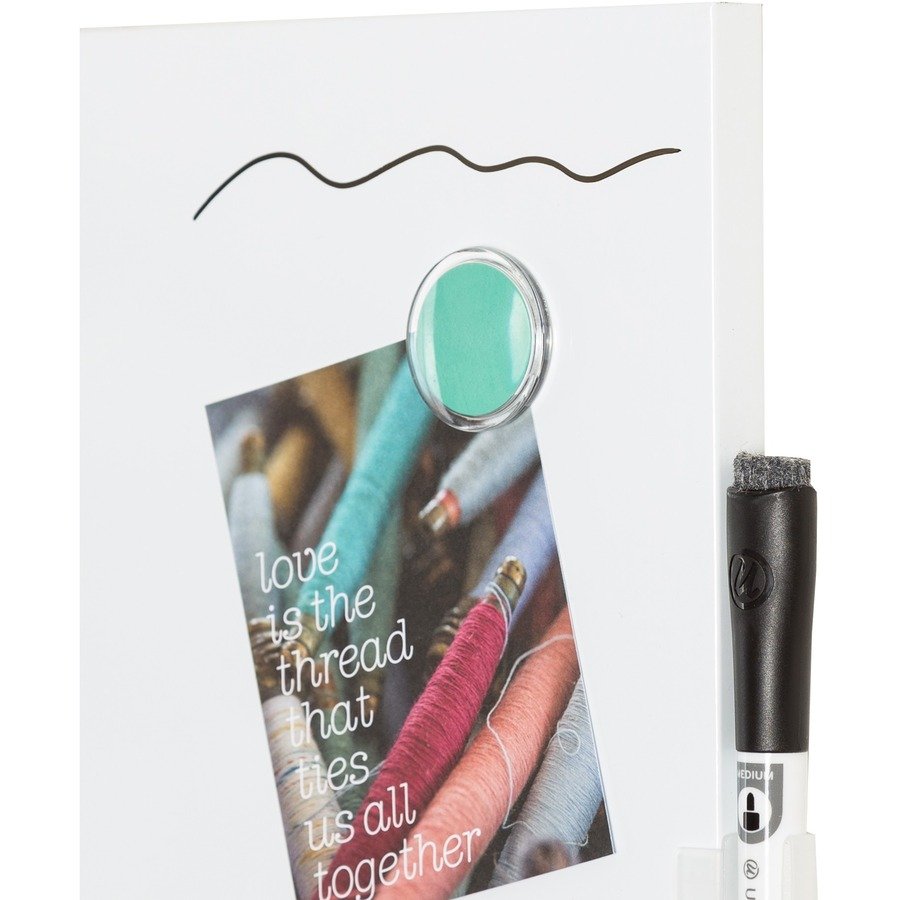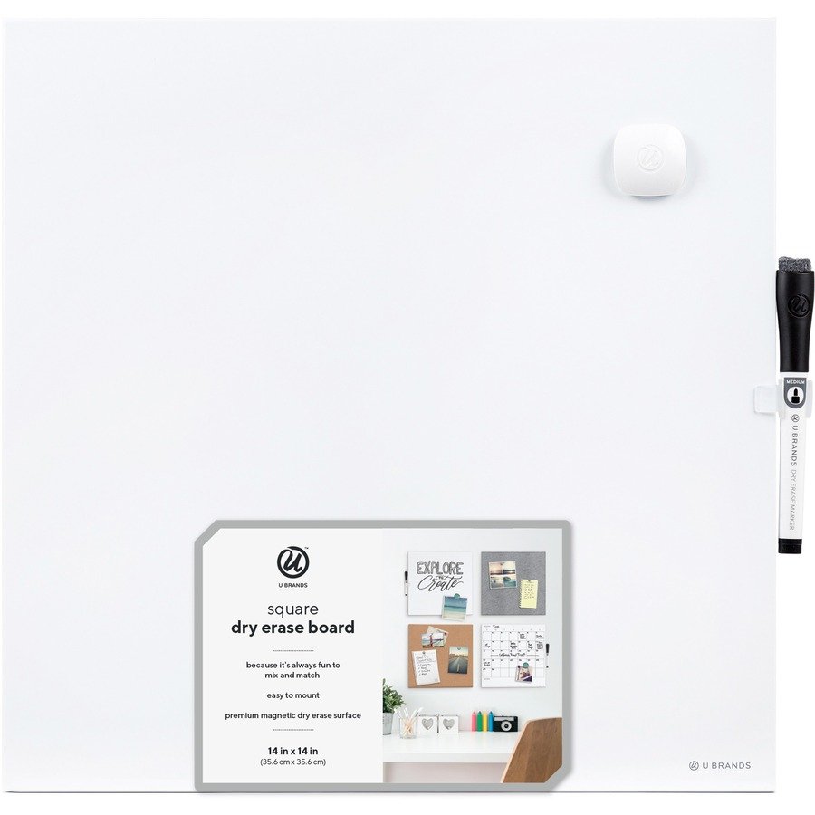This frameless, magnetic dry-erase board is a perfect and functional solution to communicate messages with dry-erase markers in your office, school, classroom, home, college dorm room, coffee shop, restaurant or any commercial space. Using the U Brands dry-erase marker (sold separately) provides the ultimate mess-free writing and erasability experience. The board’s magnetic writing surface functions as a bulletin board as well. Simply use any board magnets to pin all of your notes, messages, pictures, memos, calendars, menus, reminders and more. The silver aluminum frame provides a firm and rigid board construction.