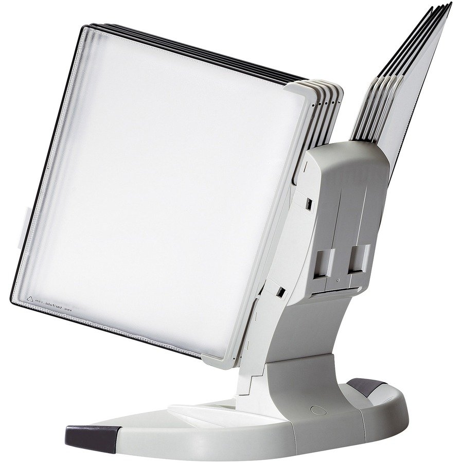 - Effortlessly adjustable for easy reading in either portrait or landscape with glare-free document sleeves