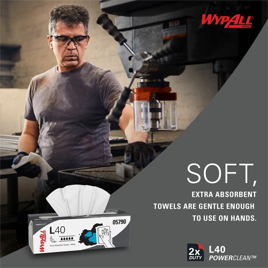 Marketing Information:If you’re looking for an effective wipe to absorb liquids lightning-fast, Power Clean L40 Extra-Absorbent Towels are just what you need. These wipes are made of bonded cellulose using DRC (double re-creped) technology for strength, softness and absorbency. As a wiping towel, it soaks up liquids fast, but all you will feel is softness, thanks to a plush, touchable outer layer. Utility wipes are specially designed to absorb liquids, lubricants and oils, yet they’re soft enough for use on your face and hands. Use towels to wipe counters in restaurants, mechanic shops, industrial/commercial factories and more. Pop-up box provides easy, one-at-a-time dispensing.